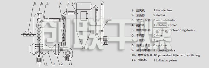 ◎物料停留時(shí)間短,成品質(zhì)量好,可用于熱敏性物料干燥。
